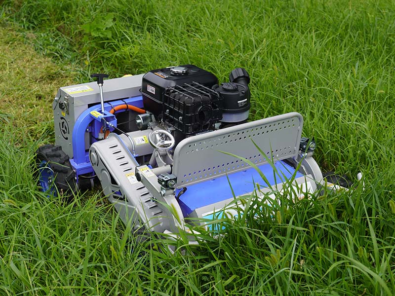 Trituradora de césped con control remoto de cuatro ruedas, ampliamente utilizada en campos, huertos, agricultores. Eliminación de malezas en campos, cinturones verdes, céspedes, etc.