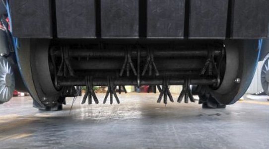 - El uso de neumáticos de caucho macizo de gran diámetro, más resistentes al desgaste, más duraderos.